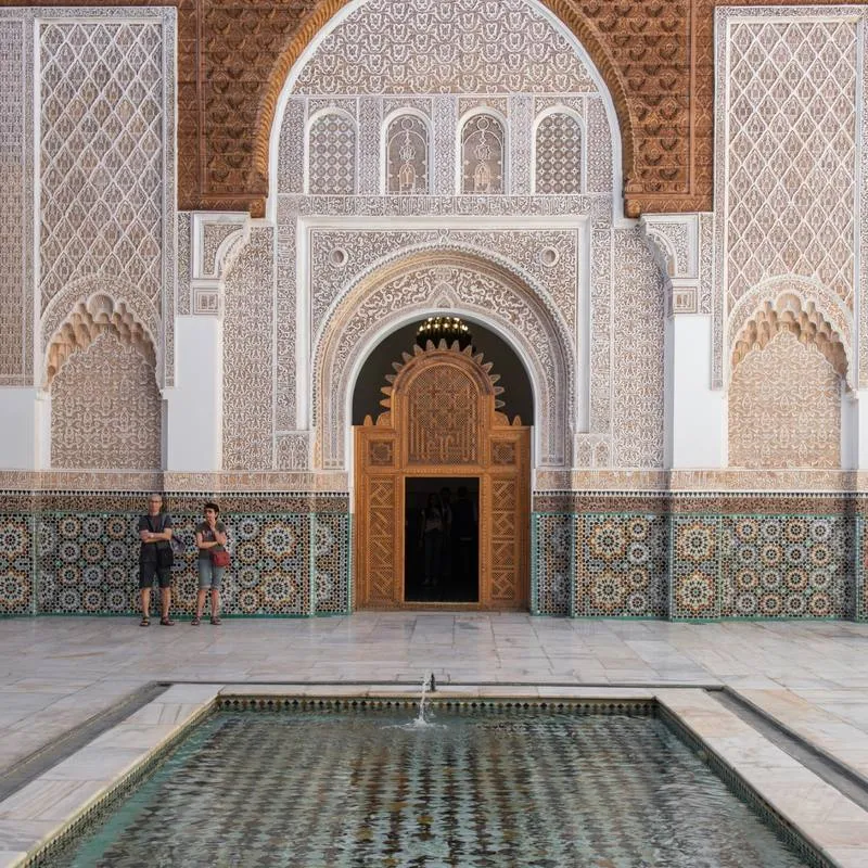 Desayuno. Visita de medio día por la fascinante ciudad de Marrakech, recorriendo los principales puntos de interés: la medina y su animado zoco, el Palacio de la Bahía, las Tumbas Saadíes y la emblemática mezquita de la Koutoubia, con su imponente minarete. Tarde libre para seguir descubriendo la ciudad a tu propio ritmo o realizar compras. Cena y alojamiento.